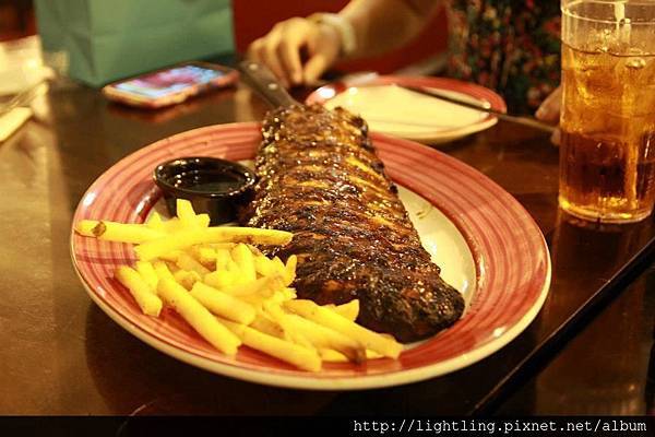 關島的FRIDAY's就位於杜夢灣廣場飯店旁。佈置上呈現美式鄉村風,有戶外、室內的座位。因為台灣也有FRIDAY's,所以對這家餐廳並不會感到陌生,FRIDAY's提供美式料理,有炭烤、海鮮、牛排、肋排、漢堡等,份量上感覺和台灣差不多,這次我們點了肋排、雞塊,都很好吃,只是上菜速度慢了點,等很久才上菜,差點耽誤了我們去看沙堡秀的行程(由於等太久了,害得我們狼吞虎嚥,食物塞進嘴巴後就走人,趕著去看沙堡秀)。